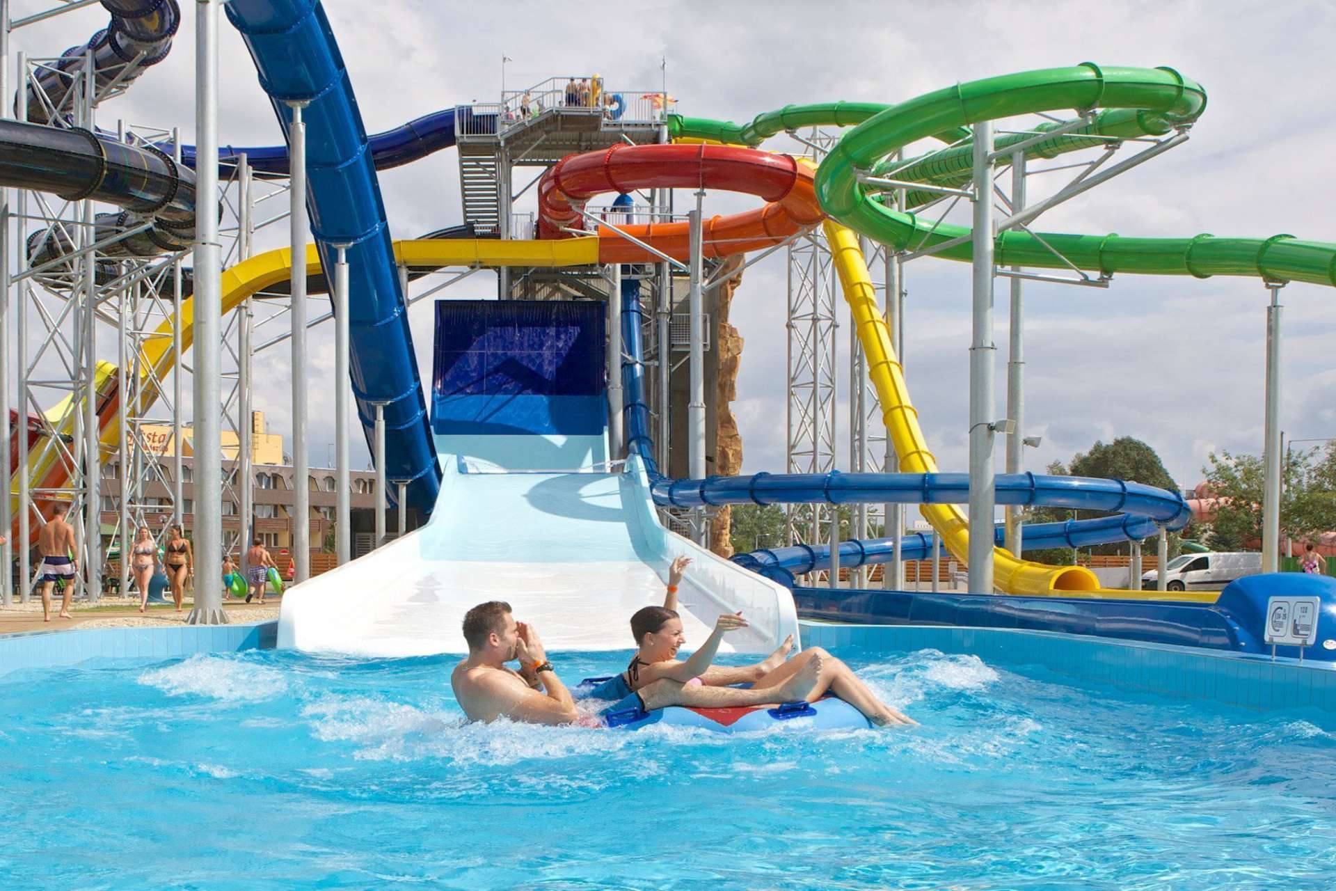 Купальний комплекс цілий рік пропонує незабутні розваги відновлюються і відпочиваючим гостям, а також сім’ям.